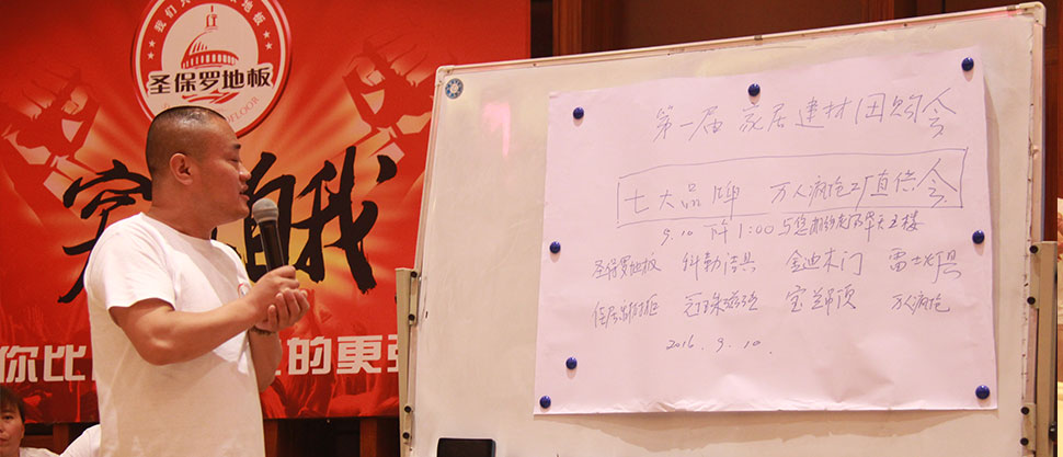 2016年7月5日,圣保羅地板2016’全國營銷精英培訓會于湖南療養之鄉——灰湯華天城溫泉度假酒店盛大開幕。來自全國各地的近兩百名營銷精英匯聚一堂,開啟了為期三天的培訓之旅。圣保羅地板安徽區總經銷商汪總以多年的實戰進行了地板營銷、運營管理經驗的分享與傳授,并現場解疑答惑;來自湖南商學院的尹元元博士進行了“互聯網+經濟發展趨勢”分析及“品牌聯盟策劃”專題講座。中華地板網作為行業垂直門戶領跑者受邀參與了本次盛會,對會議盛況進行全程直播報道的同時,對圣保羅地板優秀經銷商代表進行了專訪。