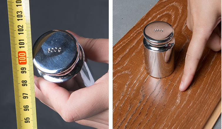 500g砝碼從1m高度自由落體至地板表面,地板表層出現兩處明顯凹痕,地板抗沖擊性能一般。