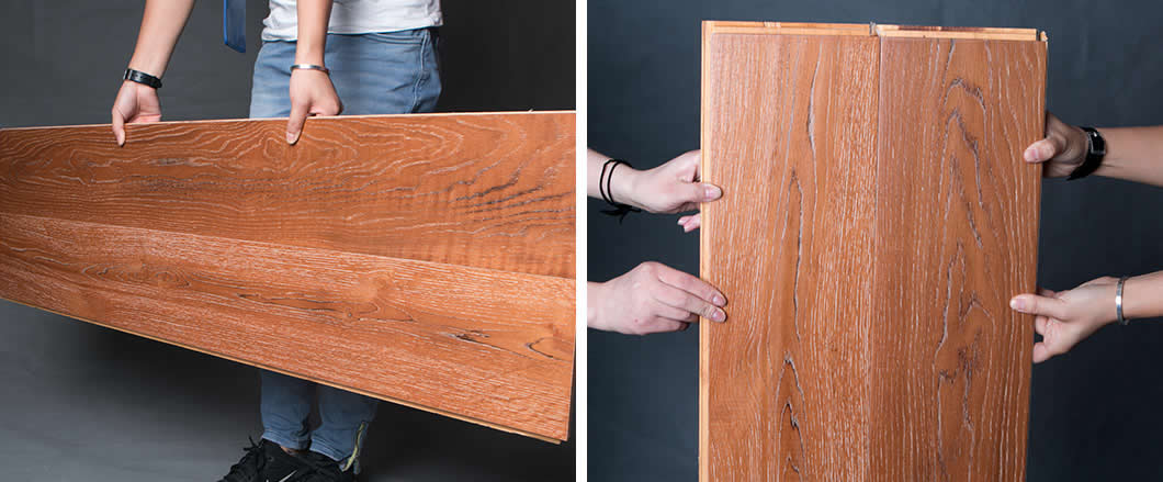 橫向晃動、縱向拉扯兩塊緊密結合的地板,地板結合處無松動,地板穩定性能極強。