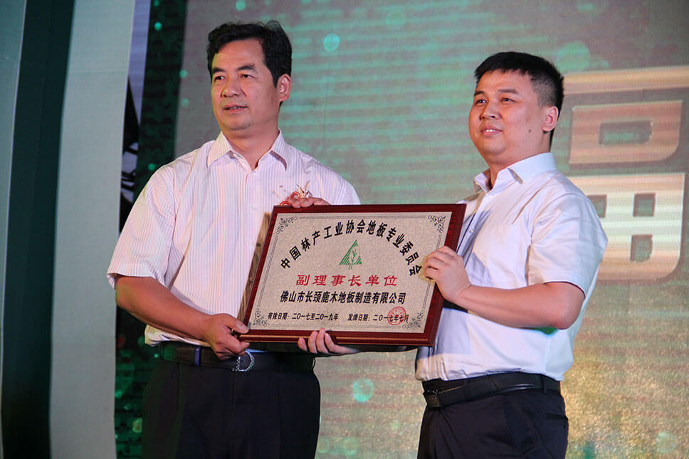 中國林產工業協會會長王滿為長頸鹿地板授牌,長頸鹿地板正式當選為中國林產工業協會地板專業委員會副理事長單位!