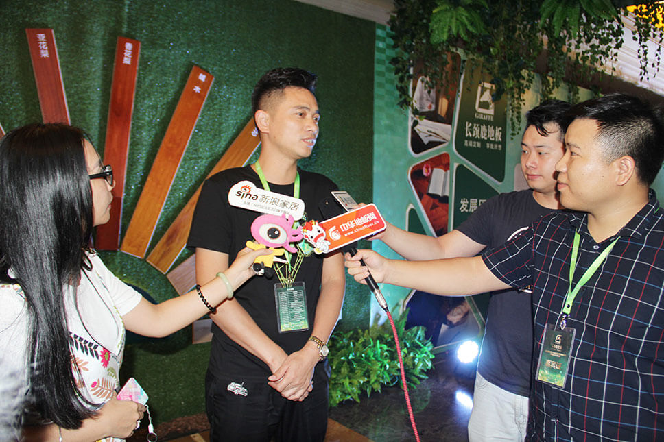長頸鹿地板董事長關志航、營銷總監譚宏平接受媒體采訪,分別就品牌文化、新品特色與營銷策略、終端店面扶持等問題進行了精彩回答。