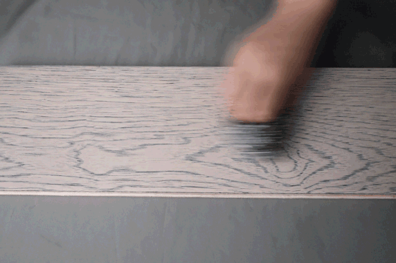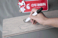 地板易打理是很多家庭的期望,尤其是家中有小孩的。我們用常見的水性筆,在這款新品上寫了“鸚鵡地板”四個大字,待字跡略干后,用抹布輕輕一擦,字跡便消失不見。不過仔細看起來,被擦拭的地方顏色會稍微深一點點。對于這款表面偏灰白色且是純手工拉絲的新品,抗污性能算不錯了。