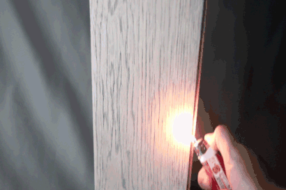 我們在1.5m的高度,使500g的砝碼自然落下,聽到了“砰”的一聲,地板表面出現了不明顯的印記。根據以往做地板評測的經驗來看,這款新品的抗沖擊性的效果還不錯。