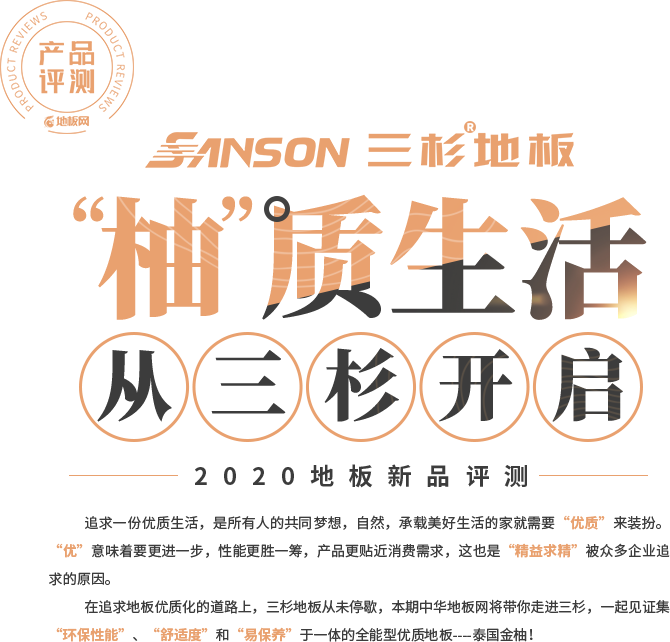 三杉地板--泰國金柚產品經過中華地板網五大極致考驗,其環保安全性、耐磨性和防潮性均表現優異,實力詮釋“好地板更環保、不矯情、好打理”,實現面面俱到的優質居家生活