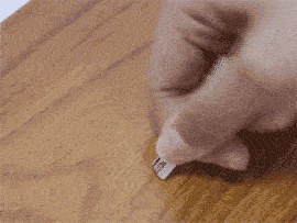 我們用鋒利的鑰匙在地板上多次刮劃摩擦,面板表面依舊光滑如新,未留下任何刮痕,堅韌耐磨,一點也不矯情!