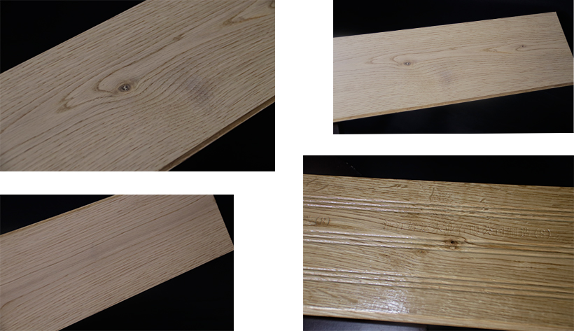 產品運用了橡木的主基調,且紋理清晰似山形,韌性極強,同時板材表面的抗污性能和防水性能都是極好的,視覺均勻,觸感細膩。